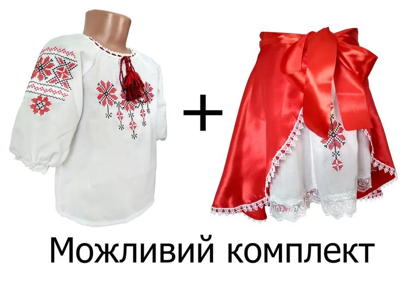 • Доставка "Укрпошта" • при відправленні "Укрпошта" передоплата 100% • • Доставка "Нова Пошта" • При відправленні накладеним платижем оплачується завдаток в розмірі 200грн Комплект для дівчинки блузка + спідниця розмір 26-34 Рукав - 3/4 тканина - Домоткане полотно та атлас Товари в основному на складі. За відсутності товару пошиття його займе 1-4 дні Розмір виробу, орнамент та тип пошиття вказуйте у - Коментарі до замовлення Параметри виробів можуть відрізнятись 1-2см Вибравши розмір орієнтуйтеся за розмірною таблицею, обхват - груди, стегна має бути у виробі на 5-10 см більше ніж обхват тіла.