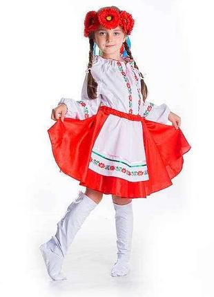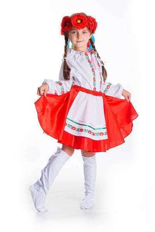 КОСТЮМ УКРАИНКИ ДЛЯ ДЕВОЧКИ ДЕТСКИЙ ДН8 Состав: блуза, юбка, подъюбник, венок Ткань: атлас, хлопок, фатин. На рост: 110-116,122-128 Просьба указывать требуемый размер в комментариях к заказу