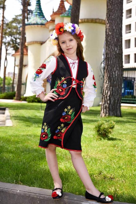 Костюм ГУЦУЛКА В костюм входят жилетка на завязках и юбка-плахта на запах и на резиночке, украшенные компьютерной вышивкой. Отдельно можно купить веночек с лентами, цену уточняйте. Размер 32 на рост 128 см Замеры: Жилет Длина - 36 см Обхват груди - 68 см Юбочка Длина - 46 см Обхват талии стянутая резинка 46 см Обхват талии растянутая резинка 52 см Обхват бедер 72 см Размер 34 на рост 134 см Замеры: Жилет Длина - 37 см Обхват груди - 70 см Юбочка Длина - 49 см Обхват талии стянутая резинка 50 см Обхват талии растянутая резинка 56 см Обхват бедер 80 см Размер 36 на рост 140 см Замеры: Жилет Длина - 38 см Обхват груди - 72 см Юбочка Длина - 51 см Обхват талии стянутая резинка 52 см Обхват талии растянутая резинка 58 см Обхват бедер 82 см Размер 38 на рост 146 см Замеры: Жилет Длина - 40 см Обхват груди - 80 см Юбочка Длина - 55 см Обхват талии стянутая резинка 53 см Обхват талии растянутая резинка 59 см Обхват бедер 86 см Размер 40 на рост 152 см Замеры: Жилет Длина - 41 см Обхват груди - 82 см Юбочка Длина - 57 см Обхват талии стянутая резинка 54 см Обхват талии растянутая резинка 60 см Обхват бедер 92 см Размер 42 на рост 158 см Замеры: Жилет Длина - 43 см Обхват груди - 88 см Юбочка Длина - 62 см Обхват талии стянутая резинка 56 см Обхват талии растянутая резинка 62 см Обхват бедер 100 см