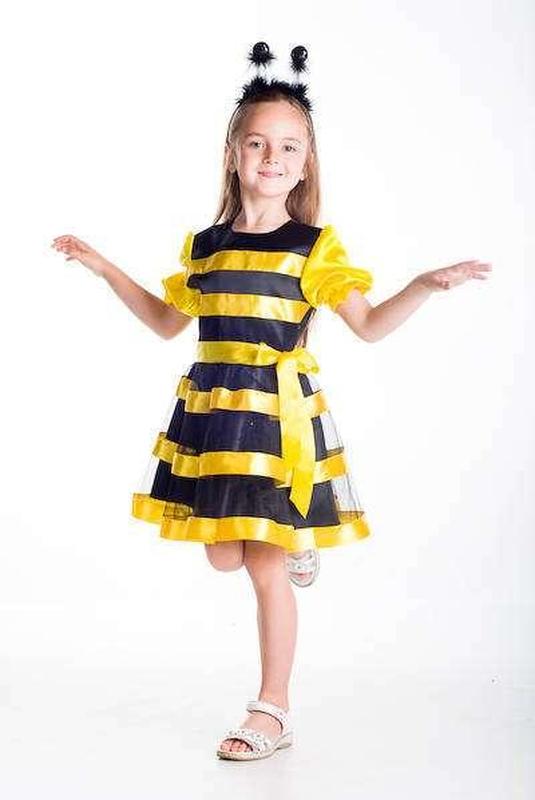 КОСТЮМ ПЧЕЛЫ ДЕТСКИЙ ДНс13 Костюм пчелы для девочки. В состав костюма входят: платье с подъюбником, рожки пчелы, крылышки Ткань: атлас, фатин На рост: 122-128 134-140 Просьба указывать требуемый размер в комментариях к заказу
