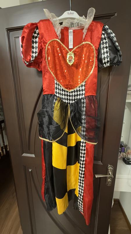Сукня одягнена один раз. Все ідеально, застібається на липучки (вони не пошкоджені), гарно сидить. Сукня з мультика Аліса у країні див- червона королева.