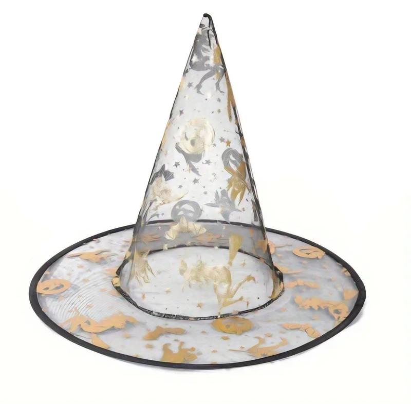 🎃 Ведьмовская шляпа с золотыми узорами ✨ Стильная шляпа-колпак для Хэллоуина и тематических вечеринок. Лёгкий прозрачный материал украшен золотыми рисунками в виде тыкв, летучих мышей, ведьм на метле и звёзд. Идеально подойдёт для создания образа ведьмочки, колдуньи или для косплея. ✅ Универсальный размер ✅ Лёгкая и удобная в носке ✅ Отличный аксессуар для фотосессий и праздников Добавьте волшебства в свой образ вместе с этой эффектной шляпой! 🧙♀️