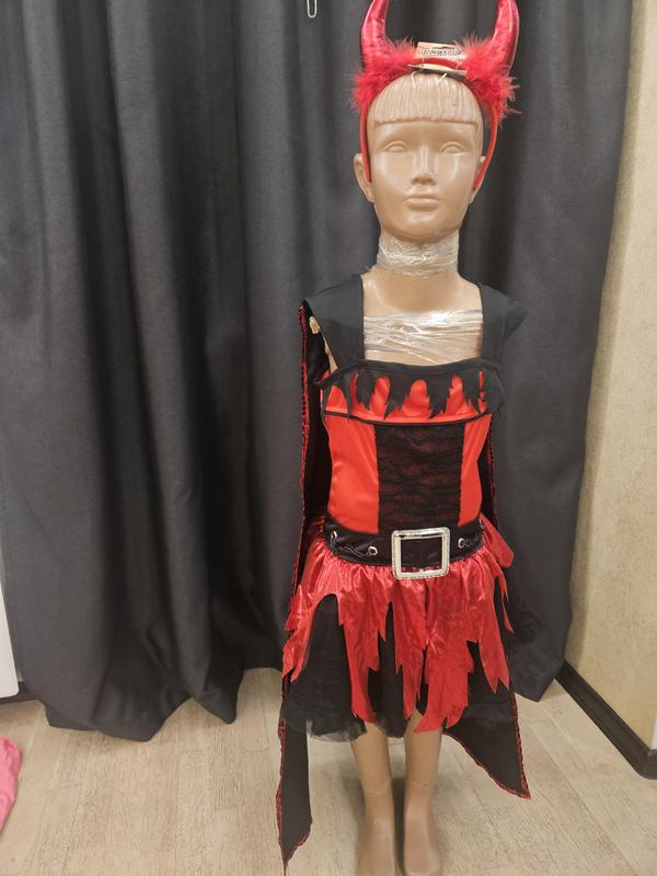 Яркое, красивое платье чертовое,короткое с плащем,рогерами 11-12 лет