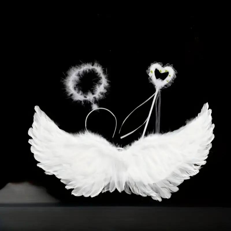 Набор крыльев ангела из перьев волшебной палочки и нимбу феи ангела для фотосессии фотосъе...