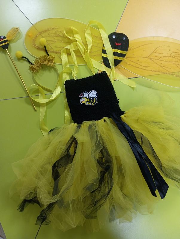 очень классный костюмчик пчелки, яркий, платье, крылышки, обруч, палочка. приблизительно будет от 2 до 5 лет