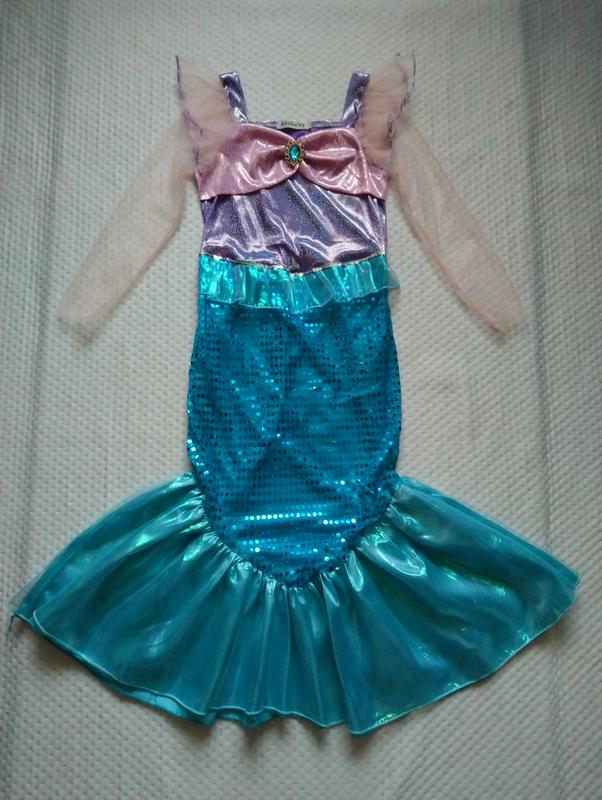В очень хорошем состоянии. Из дефектов нет несколько пайетков. Размер 140. Высота 100 см. Под руками 34 см и тянется. Рукав от плеча 48 см. Полуобъем пояса 30 см и тянется
