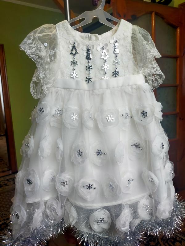 Продам платье снежинка. Одягали на свято в садочок. Состояние - очень хороший. Недостатков нет. Размер - 92. На фото дони 2,5. Но она из тех мелочей. Дополнительно есть еще обруч-снежинки. Видимо на ребенке. Что касается замеров, обратитесь в сообщение.