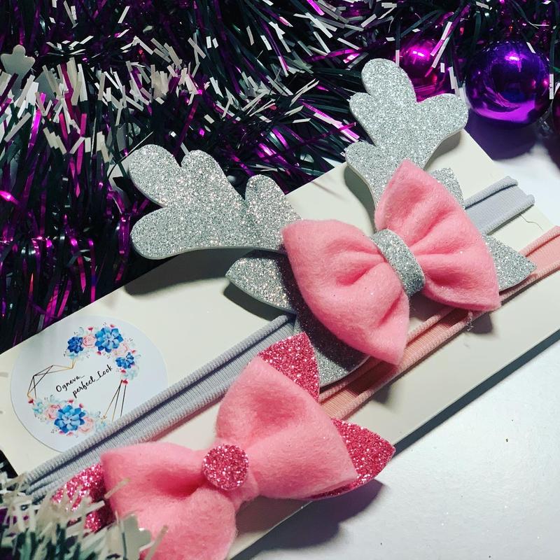 Новогодние повязочки для девочки. Можно заказать набором, можно по отдельности. Возможен заказ в любом цвете и размере.