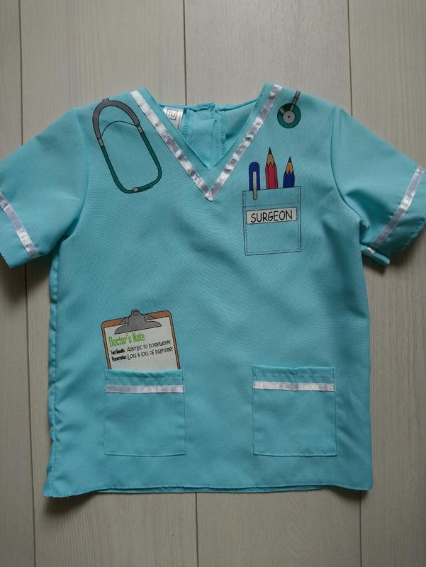 Карнавальний костюм в дуже хорошому стані Матеріал поліестр На вік 5-7 років і ріст 110-122 см Ззаду на ліпучках Довжина 46 см В плечах 30 см Півобсяг грудей 30 см