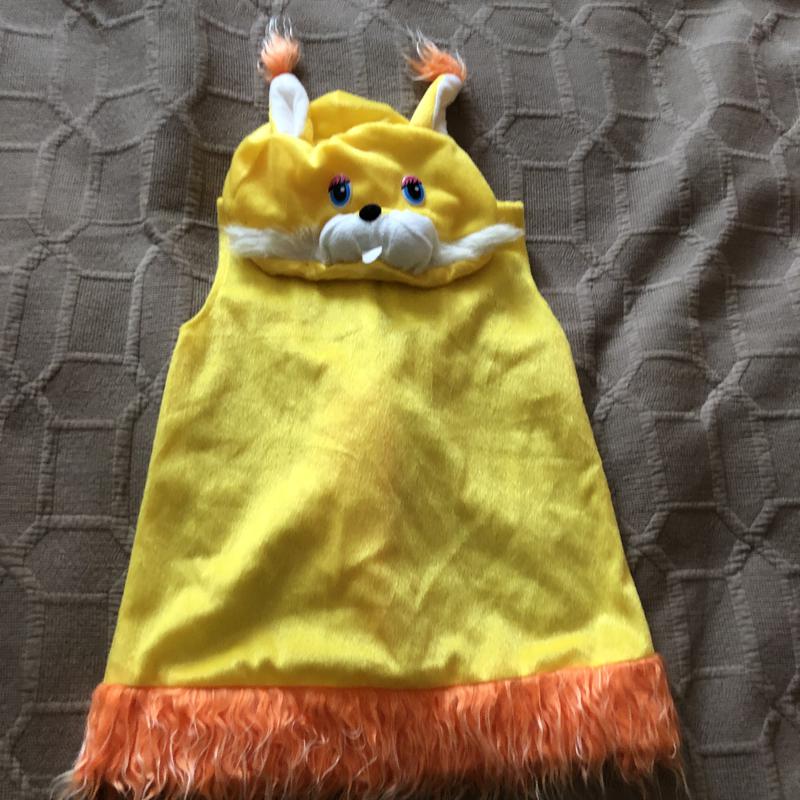 Костюм белочки для малышки. Состоит из милого сарафанчика с рыжим хвостиком и шапочки- белочки