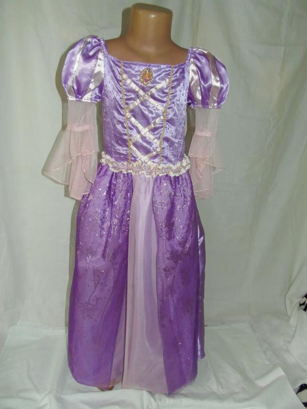 сукня рапунцель на 7-8 років,у хорошому стані.З нюансів плямочка спереду знизу,так само спереду зліва знизу выстрепы на тканини.всі дефекти на фото довжина 97см,від плеча до пояса 31см,ширина під пахвами 30см,пояс 25см є гумка,рукав 41см,плечі 17см відправка після оплати