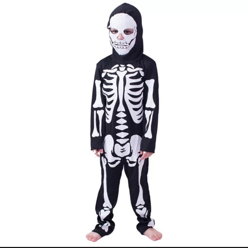 Скелет Популярный костюм На Хэллоуин, костюмированную вечеринку Комплект состоит из комбинезон + маска Замеры реальные, ориентируйтесь по ним XS на рост 98-104 см (Длина комбинезона от плеча до низа 85 см) S на рост 104-116 см (Длина комбинезона от плеча до низа 96 см) M на рост 116-132 см (Длина комбинезона от плеча до низа 113 см) L на рост 132-144 см (Длина комбинезона от плеча до низа 125 см)