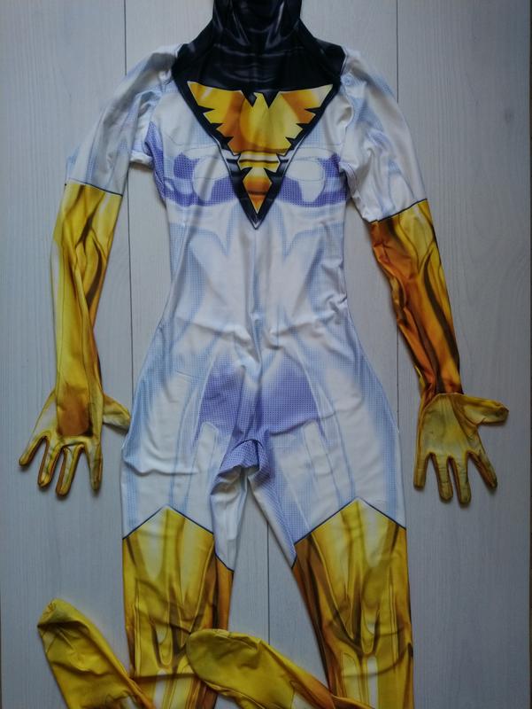 Карнавальний костюм в дуже хорошому стані Ззаду на замочку Еластичний Розмір S Зентаі друга шкіра Довжина від плеча до низу 140 см Від плеча до пахвини 62 см, В плечах 29 см і тягнеться Попід руками 37 см і тягнеться Півобсяг пояса 27 см і тягнеться Півобсяг стегон 44 см і тягнеться Рукав від плеча з пальчиками 68 см