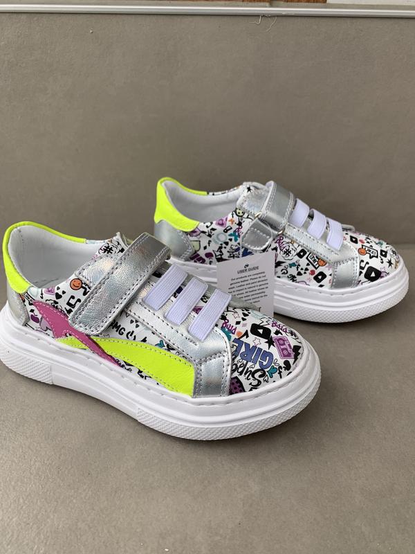 Кожаные кеды с ярким принтом! Натуральная кожа извне и в середине! Твердый задник, стелька с супинатром! Одна липучка и резинки, удобно надевать! Очень легкие! В наличии: 26.27.28.29.30