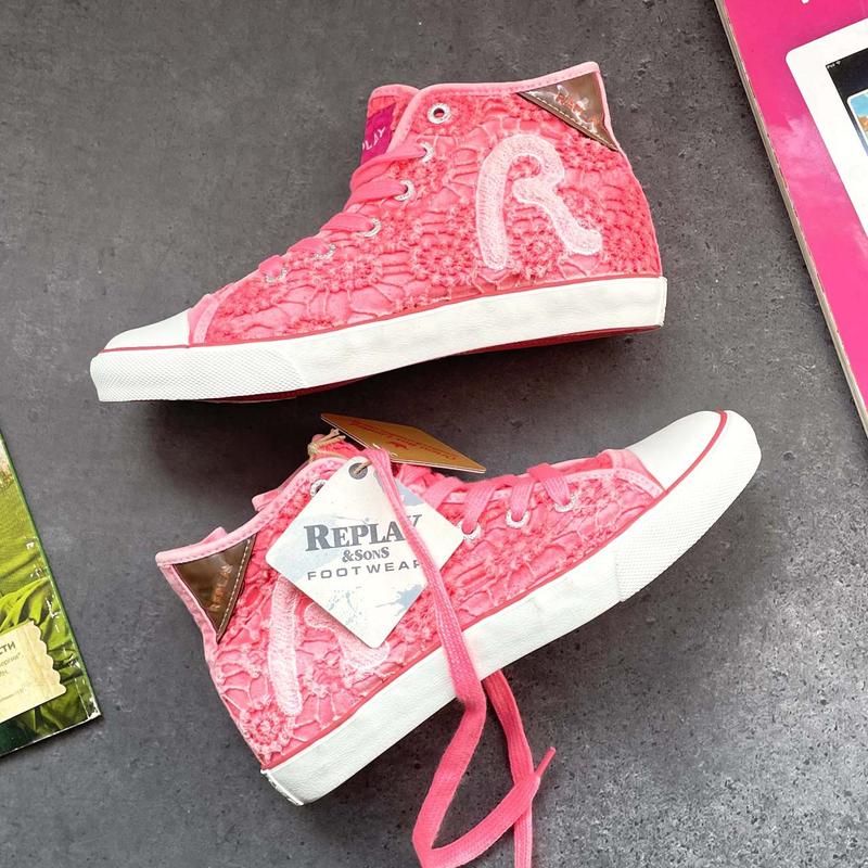 Текстильные кеды на девочку Replay верх натуральный дышащий текстиль мягкая текстильная подкладка и стелька фиксация шнуровка резиновая нескользящая подошва цвет розовый EUR 34, длина стельки 22.8 см