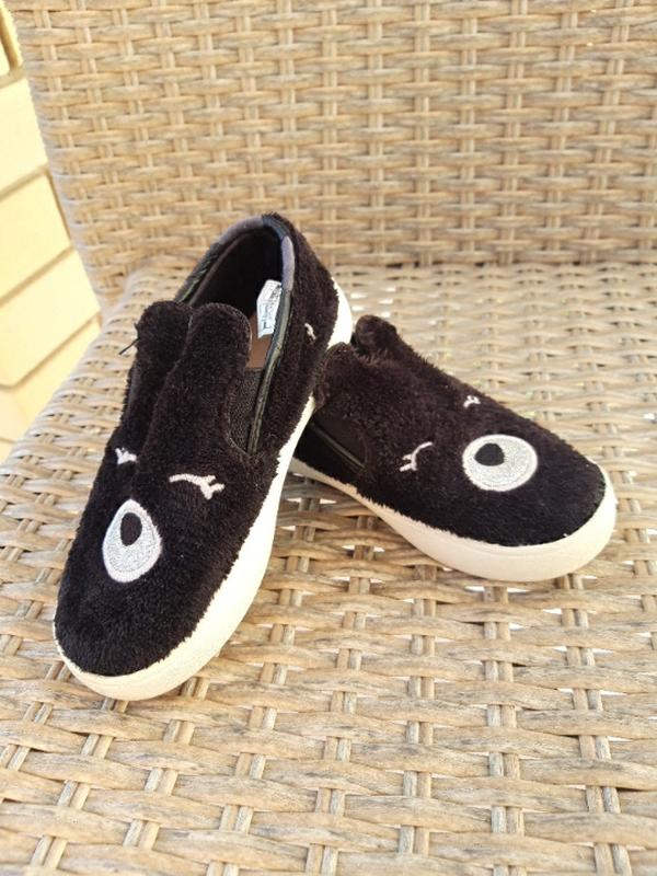 Плюшевые слипоны, на правом есть недостаток, на фото виден
