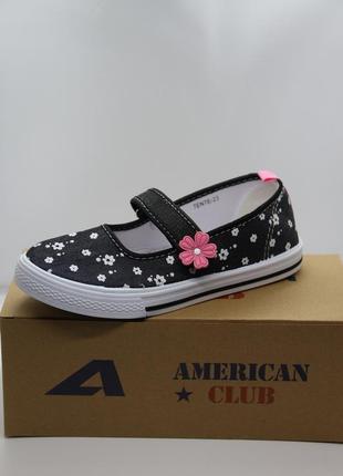 Очень симпатичная модель American Club (Польша) Великолепные текстильные кеды для девочки. Просто незаменимы и дома, и в садике, а так же на даче и в деревне, ну и куда же без них летом на прогулку и на детскую площадку! Яркие цвета, забавные рисунки, оригинальный дизайн порадуют ребенка. Родители же будут рады отличному качеству и простоте в уходе за этой недорогой, повседневной обувью. Мягкие, легкие, подошва эластичная, легко гнется , прорезинена, не скользит. Внутренний материал:текстиль. Стелька:кожа. Сезон:лето. Бренд:American Club (Польша) Тип:кеды Упаковка:коробка . замеры мои ,а не производителя .указана длина внутренней стельки .все замеры делаются от 0. * Размер: 31 р-р - 20,0см 32 р-р - 21,0см 33 р-р - 22,0см 34 р-р - 22,5см 35 р-р - 23,0см Стратегия компании - продвигать собственный бренд American Club. В то же время производитель делает коллекции обуви на основе современных мировых тенденций моды. Бренд American Club способен точно и тщательно соответствовать ожиданиям своих клиентов, определить их пожелания и потребности. Благодаря многолетнему опыту, квалифицированному персоналу и участии при подготовке новых дизайнов и коллекций American Club успешно запускает обувь с неповторимым стилем на современный рынок, независимо от того, речь идет об зимней обуви, спортивной или текстиль. Детская обувь American Club создается компанией в соответствии с требованиями международной медико-профилактической программы под названием «Здоровая стопа», которая положена в основу дизайна обуви для детей и конструкции колодки. Для того чтобы обувь легко одевалась, практически все модели снабжены удобными застежками типа клипс и липучками, которые хорошо фиксируют стопу и не теряют своих свойств до полного изнашивания . Немаловажно и то, что все модели детской обуви польского производителя имеют привлекательный дизайн и доступные цены, благодаря чему каждый родитель может приобрести красивую и полезную обувь для своего малыша. КРИТЕРИИ, НА КОТОРЫЕ СТОИТ ОРИЕНТИРОВАТЬСЯ ПРИ ВЫБОРЕ ОБУВИ Рекомендуется принимать во внимание следующие факторы: Материал. В большинстве случаев предпочтение отдается материалам, которые изготовлены из такого сырья, что позволяет коже дышать. Важное значение имеет адаптация к естественной анатомии ноги, а значит, не оказания негативного влияния на процесс ее формирования. Размер. Многие родители подбирают обувь, которая не соответствует размеру, например, покупают модели «на вырост». Они думают, что это позволит им сэкономить денежные средства, а товар будет использоваться в течение нескольких сезонов. Это не совсем так. В обуви, неправильно подобранной по размеру, ребенку будет неудобно, а к концу для ноги начнут болеть. Помимо представленных параметров важно оценить качество пошива, эластичность подошвы, плотность задника. Впрочем, если подбирается продукция от хорошего производителя – эти качества и так будут соответствовать стандарту.