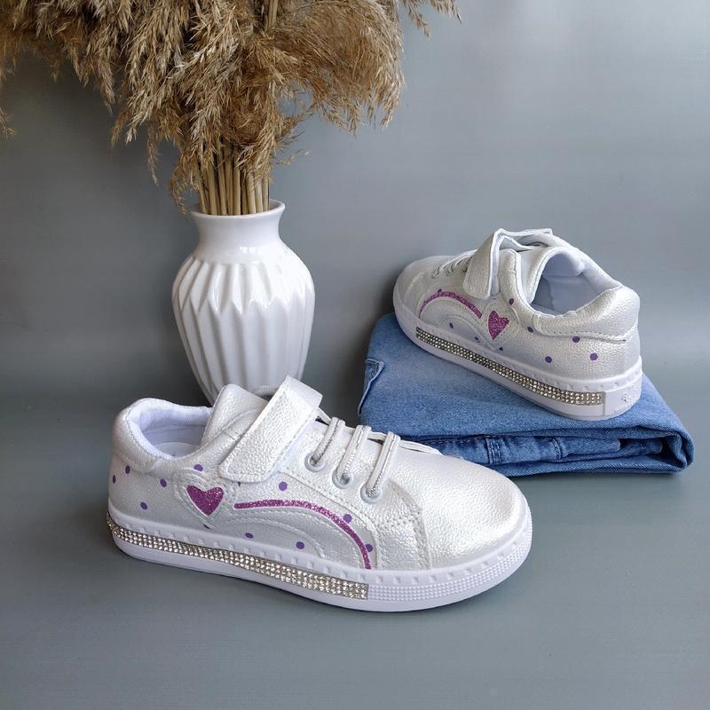 Белые, перламутровые кроссовки, кеды, мокасины. Выполнены из экологичных материалов. Легкие, внутри текстильная подкладка и дышащая текстильная стелька. Шнуровка-резинка обманка, застежка-липучка. Резиновая подошва-гибкая и эластичная, высота подошвы - 3 см. Цена окончательная. 31 р. - 19 см. 32 р. - 19,5 см. 33 р. - 20 см. 34 р. - 20,5 см.-проданные 35 р. - 21 см.-проданные 36 р. - 21,5 см.-проданные