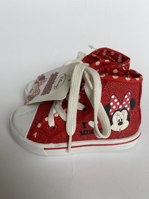 Красивые кеды с Минни французского бренда Kiabi. Материал - текстиль. Застёгиваются на молнию сбоку. Размер 23. Длина стельки 14,3см. Новые, с биркой, но есть нюанс - окрас на носочках, на фото видно. Поэтому цена значительно снижена. ‼️Отправка каждый день🙌 🚛Доставка Новой почтой, укрпочтой. 💰 Оплата на карту Приватбанка, безопасная оплата. Смотрите и другие мои объявления. Много вещей бренда Kiabi по доступным ценам. Каждый день добавляю товар. Подписывайтесь, будьте в курсе новинок!