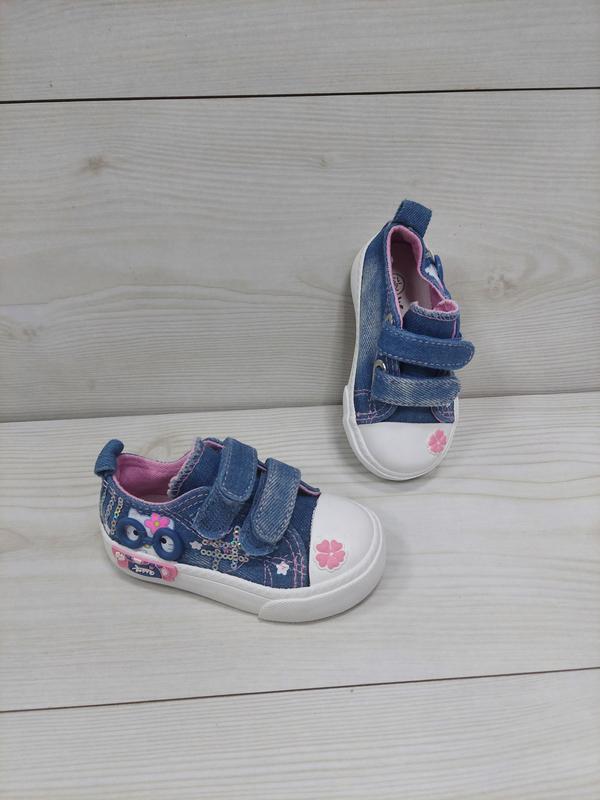 Джинсові кеди для дівчинки на двох липучка. Розміри в наявності: 21р.устілка-13см. 24р.устілка-14,6см.