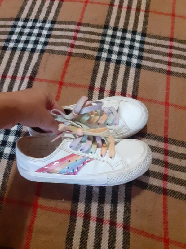Красивые кеды белого цвета с яркими шнурками в очень красивом состоянии.