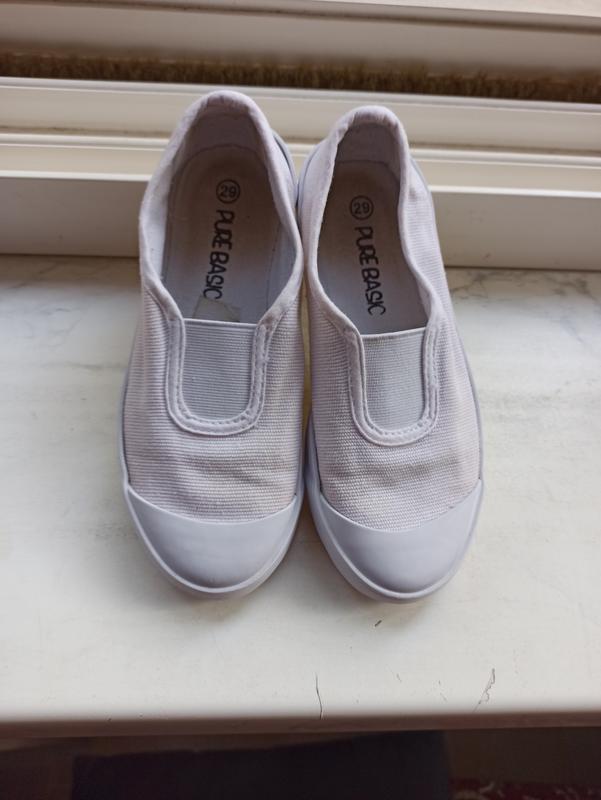 Белые кеды немецкого бренда. Носочек прорезиненный, в подъеме резинка.