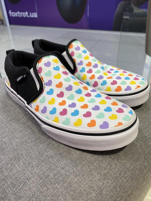 Круті зручні сліпони від VANS. Яскравий принт у сердечко. Розмір в наявності - 34.5 Абсолютно нові, на фото видно, але немає бирки бренду і коробки.