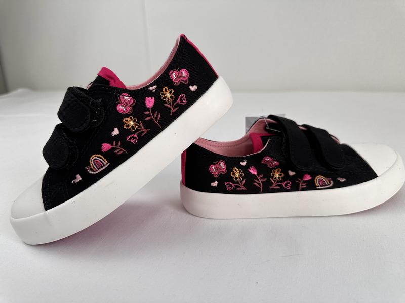 Кеди на дівчинку George Англія в розмірі 28-евро,10-англійський, 18 см по устілці- мій замір та 26-евро, 8-англійський, по устілці 16 см Трендові та яскраві кеди на двох липучках для легкого , зручного взування Дуже стильно дивиться контрастна вишивка на чорній основі