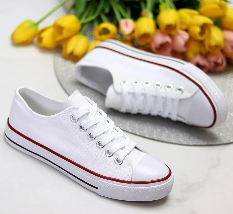 Классические белые кеды в стиле Converse из прочного текстиля. Удобная и стильная обувь для повседневной жизни, которая прослужит долгие годы. размеры по стельке 36 - 23см 38 - 24см 39 - 24.5см