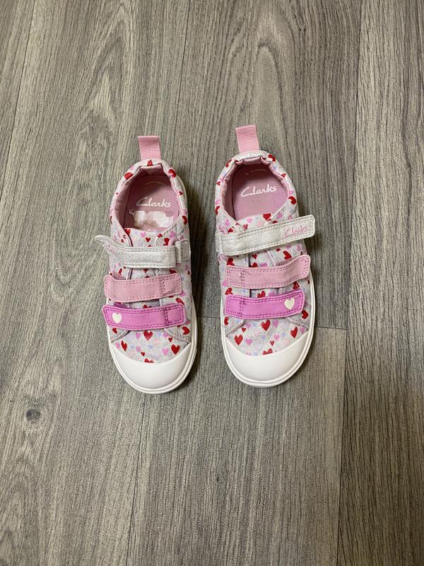 Кеды Clarks с сердечками Размер 28,5 ( стелька полностью 18 см) Состояние новых, так как два раза обували Покупали в прошлом году в Польше На последнем фото показала как выглядит на ноге