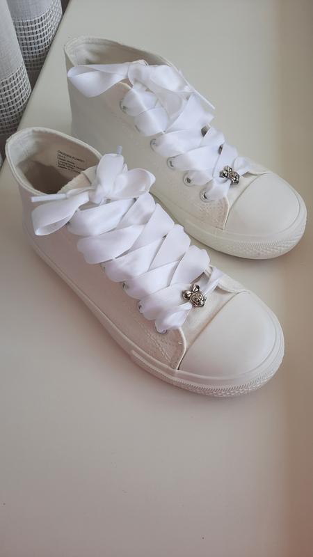 Это просто невероятно красивые кеды на девочку. Легкие и удобные. Беленькие, без диффектов. Состояние новых. Подошва нольцевая. Шелковая шнуровка, с микимаусом, который снимается. Стелька 21,5 см.