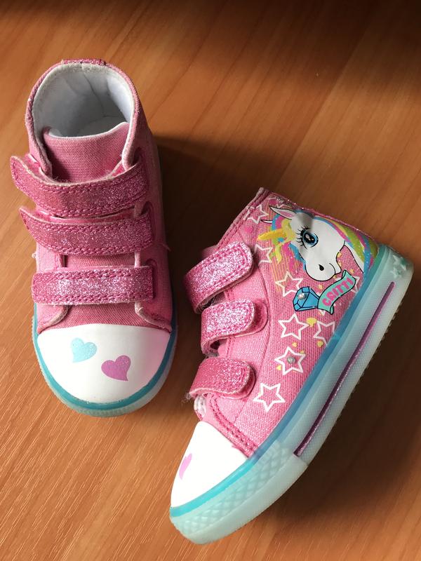 Кеды с мигалками cupcake 23 р. Стелька 15 см. Яркие и блестящие! Имеют по три лампочки, которые при ходьбе мигают желтым, синим и красным светом. Защелкиваются на 3 липучки, держат очень крепко. Легкие и очень удобные. Состояние идеальное, норманы мало. Перешлю