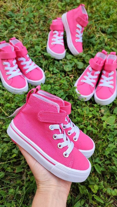 Яскраві, малинові кеди для дівчаток від H&M. На липучці. Тканинна основа дозволяє ніжці дихати 👌. Розміри в наявності: 24 - 15см 25 - 15,5см 26 - 16см 27 - 17см 29 - 18,5см