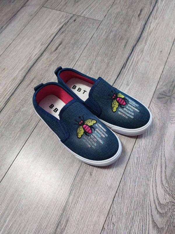 Слипоны детские для девочки BBT. Ткань - джинс, легкие. Подойдут как для прогулок на улице, так на переобувь.