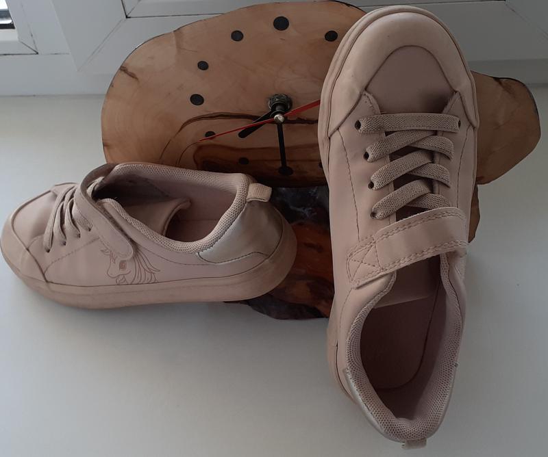 Незабаром ваша принцеса піде до школи і гарні, бежеві кеди фірми HM стануть їй в пригоді. Вони легкі, є малюнок єдинорога. Шнуровка резинова, на липучкі. Перед кедів прорезиновий. На задніку серебляста вставка. Розмір 31. По устілки 19,5 см.