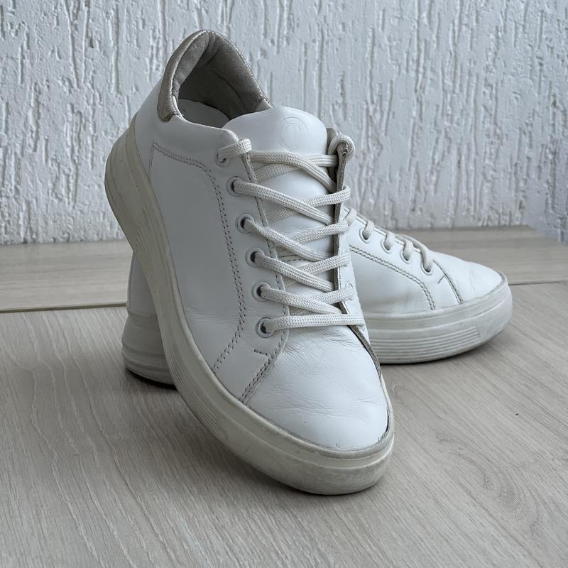 Кеды из натуральной кожи детские, на девочку. В использовании были мало. Размер 33. Длина стельки 22 см. Так как носок немного скруглен, то длина стопы ребенка должна быть не больше 21 см.
