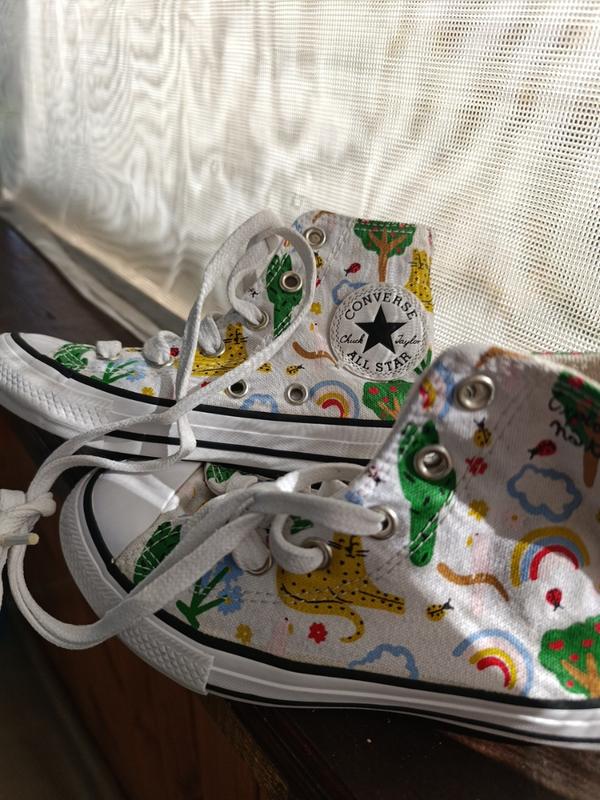 Бренд: Converse Модель: Converse Chuck Taylor All Star Колір: Білий/Зелений Матеріал: Шкіра/Гума/Нейлон/Поліестер/Замша/Сатин/Суміш бавовни