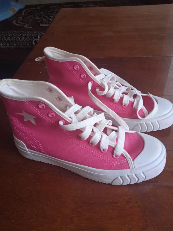 кеды испарительного цвета, на толстой подошве белого цвета, белые шнурки, новые 36 размера
