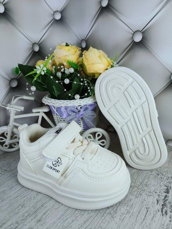 Стильные, утепленные кроссовки Внутри: плюш Верх: эко кожа Застежка: липучка Легкие по весу Замеры сделаны по стельке до загиба, допустимая погрешность +-1-2 мм. *каждая пара идет в индивидуальной упаковке* Размеры: 22р – 13,5 см 24р – 14,5 см 25р – 15 см 26р – 15,2 см
