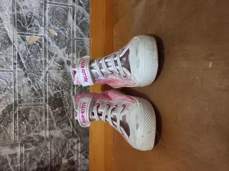 Кеды для девочки Hello Kitty, состояние нормальное. На липучке, высокие. Размер 30. Стелька не вынимается. Стирала в стиральной машине, возможно, если стирать вручную то белые носки отстираются.