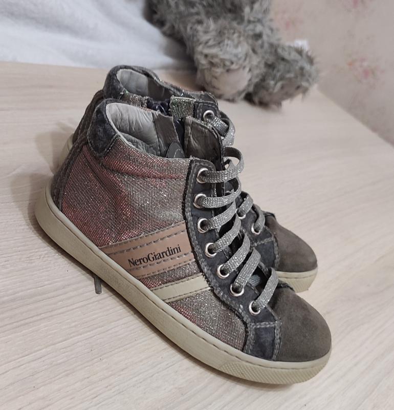 очень симпатичные кедики от итальянского люксового бренда Nero Giardini, носок и задник из замши, по бокам ткань с блеском красиво переливающейся разными. цветами, внутри мягкая натуральная кожа.