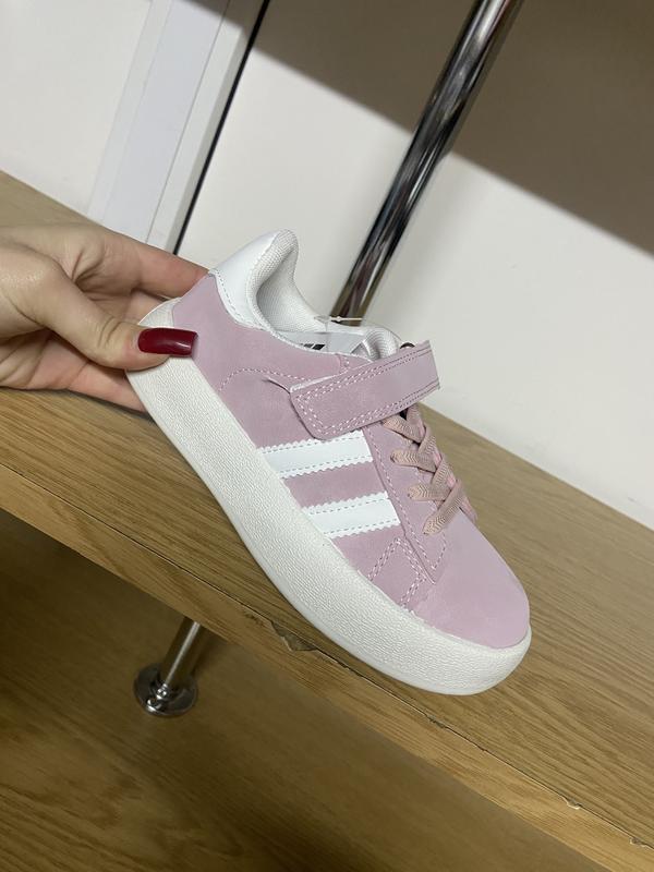 🌸 Стильные кроссовки для маленьких модниц! 🌸 ✨ Идеальны для школы, прогулок и активных игр! ✨ ✅ Нежный розовый цвет – подчеркнет стиль вашей девочки. ✅ Удобная высокая подошва – легкая, гибкая, амортизирующая при ходьбе. ✅ Две стильные полоски сбоку – добавляют оригинальности. ✅ Дышащий материал – ножкам комфортно даже в жаркую погоду. ✅ Легко надевать – отлично сидят на ножке, подходят на любой подъем.