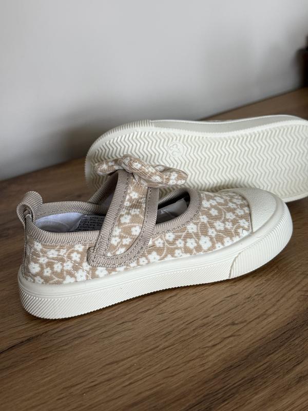 Чарівні дівочі кеди з квітковим принтом та бантом, мʼяка не ковзаюча підошва, застібка липучка, комфортно для пальчиків за рахунок широкого носочка, розмір 23, заміри на фото