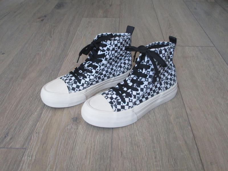 Стельки нет! Высота подошвы 2,5 см Материал текстиль. Цвет черный с белым, цвет подошвы - молочный минимально стерта подошва сзади. Также следы носки на текстиле извне (на фото). Во всем остальном состояние хорошее.