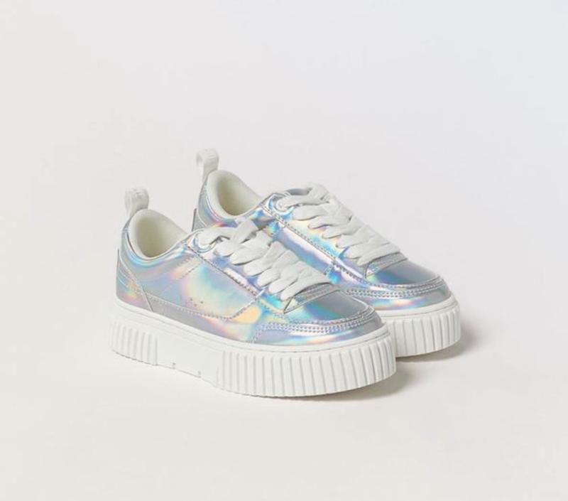 Новые серебристые кеды Zara на небольшой белой платформе.Размер 34,35