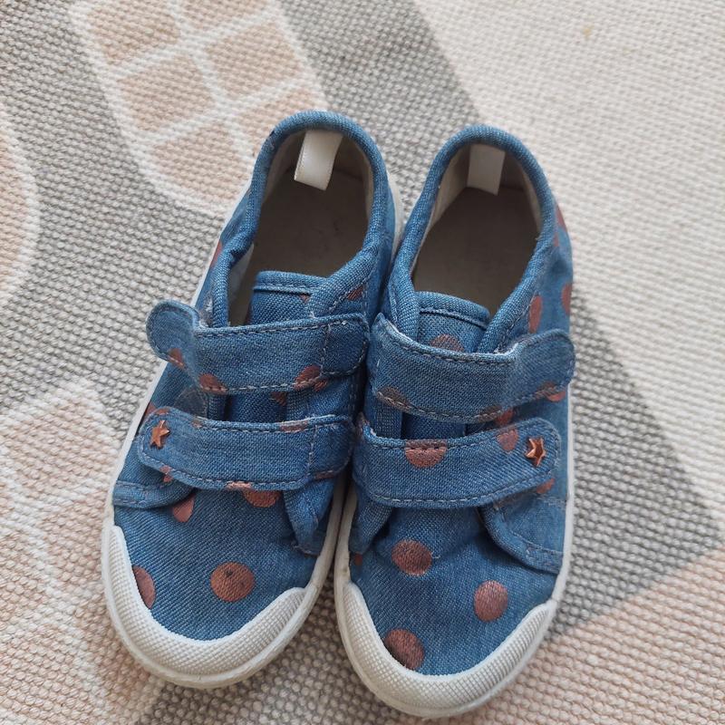 Кеды для девочки фирмы Pepco. Застегиваются нс липучки, не тяжелые. Не новые в удовлетворительном состоянии. Материал верха джинс. 26 размер- 15,8 см стелька.