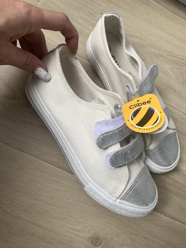 Гарні по типу джинс кеди для дівчинки, на липучках. Абсолютно нові, не підійшов розмір. Устілка 22 см. Колір ближче до молочного, не білий
