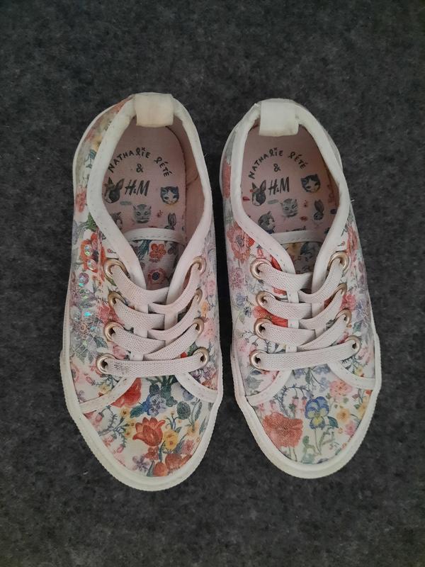 Кеди на дівчинку, квітковий принт, з пастками, устілка 17см.