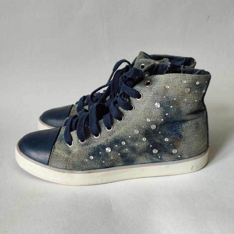 Джинсовые кеды со стразами GEOX. Отличное состояние, без дефектов. Единый нюанс – отсутствие наклейки Geox на задней части подошвы в одном из кед. Размер 36. Стелька 22,5см, подошва 24,3см.