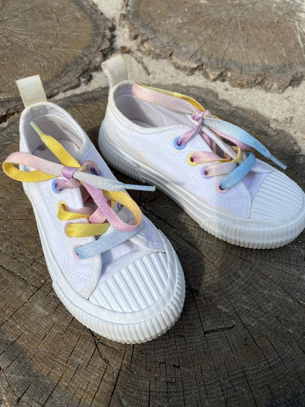 Кеди в ідеальному стані,але після прання залишились сліди мила потрібно пере прати Розмір по підошві 18 см по устілці приблизно 15 см тому як устілка не виймається точний замір зробити не можу.Підходить на худеньку ніжку,бо нам не підійшли тому одяглися 1 раз.